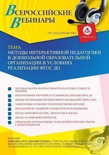 Вебинар Методы интерактивной педагогики в дошкольной образовательной организации в условиях реализации ФГОС ДО