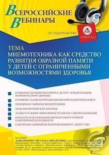 Вебинар Мнемотехника как средство развития образной памяти у детей с ограниченными возможностями здоровья