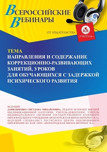 Вебинар Направления и содержание коррекционно-развивающих занятий, уроков для обучающихся с задержкой психического развития