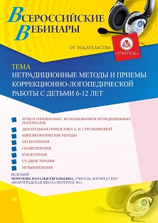 Вебинар Нетрадиционные методы и приемы коррекционно-логопедической работы с детьми 6-12 лет
