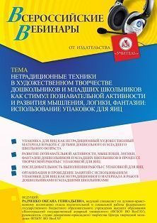 Вебинар Нетрадиционные техники в художественном творчестве дошкольников и младших школьников как стимул познавательной активности и развития мышления, логики, фантазии: использование упаковок для яиц