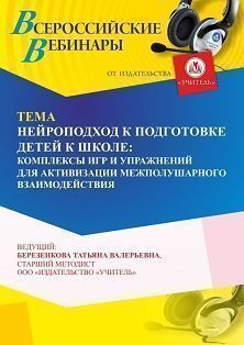 Вебинар Нейроподход к подготовке детей к школе: комплексы игр и упражнений для активизации межполушарного взаимодействия
