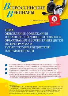 Вебинар Обновление содержания и технологий дополнительного образования и воспитания детей по программам туристско-краеведческой направленности