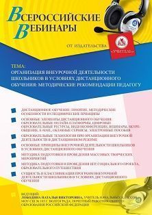 Вебинар Организация внеурочной деятельности школьников в условиях дистанционного обучения: методические рекомендации педагогу