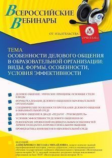 Вебинар Особенности делового общения в образовательной организации: виды, формы, особенности, условия эффективности