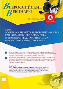 Вебинар "Особенности учёта требований ФГОС ВО как нормативного документа при разработке дополнительных профессиональных программ"