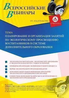 Вебинар Планирование и организация занятий по экологическому просвещению воспитанников в системе дополнительного образования