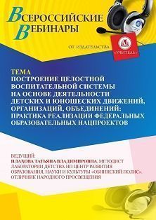 Вебинар Построение целостной воспитательной системы на основе деятельности детских и юношеских движений, организаций, объединений: практика реализации федеральных образовательных нацпроектов