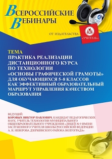 Вебинар Практика реализации дистанционного курса по технологии “Основы графической грамоты” для обучающихся 5–8 классов как эффективный образовательный маршрут управления качеством образования