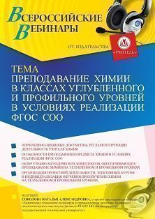 Вебинар Преподавание химии в классах углубленного и профильного уровней в условиях реализации ФГОС СОО