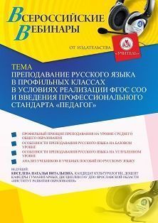 Вебинар Преподавание русского языка в профильных классах в условиях реализации ФГОС СОО и введения профессионального стандарта “Педагог”