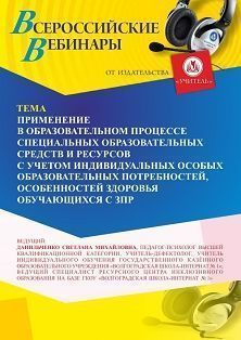 Вебинар Применение в образовательном процессе специальных образовательных средств и ресурсов с учетом индивидуальных особых образовательных потребностей, особенностей здоровья обучающихся с ЗПР