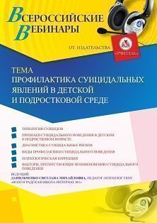 Вебинар Профилактика суицидальных явлений в детской и подростковой среде
