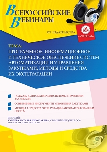 Вебинар Программное, информационное и техническое обеспечение систем автоматизации и управления закупками, методы и средства их эксплуатации