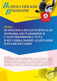 Вебинар Психолого-педагогическая помощь обучающимся с нарушениями слуха в их социальной адаптации и реабилитации