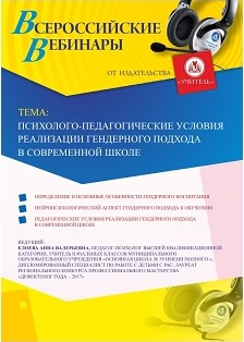 Вебинар "Психолого-педагогические условия реализации гендерного подхода в современной школе"