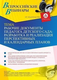 Вебинар Рабочие документы педагога детского сада: разработка и реализация перспективных и календарных планов