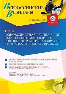 Вебинар Разновозрастная группа в ДОО: виды, порядок комплектования, особенности организации режима дня и учебно-воспитательного процесса