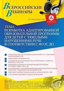 Вебинар Разработка адаптированной образовательной программы для детей с тяжелыми нарушениями речи в соответствии с ФГОС ДО