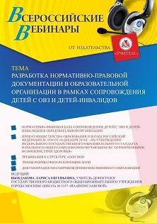 Вебинар Разработка нормативно-правовой документации в образовательной организации в рамках сопровождения детей с ОВЗ и детей-инвалидов