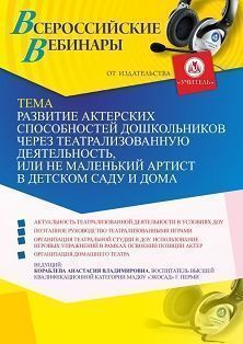 Вебинар Развитие актерских способностей дошкольников через театрализованную деятельность, или Не маленький артист в детском саду и дома