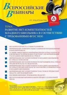 Вебинар Развитие ИКТ-компетентностей младшего школьника в соответствии с требованиями ФГОС НОО