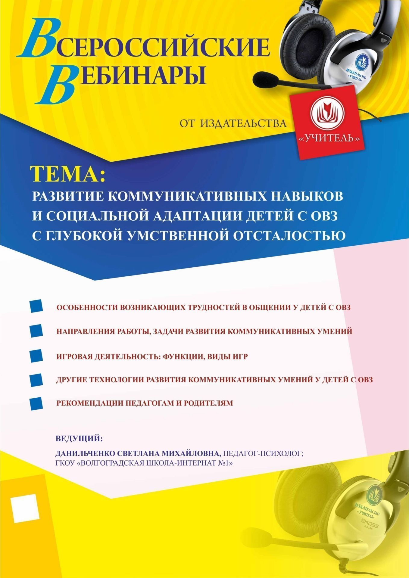 Вебинар Развитие коммуникативных навыков и социальной адаптации детей с ОВЗ с глубокой умственной отсталостью