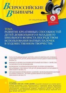 Вебинар Развитие креативных способностей детей дошкольного и младшего школьного возраста посредством использования ватных палочек в художественном творчестве