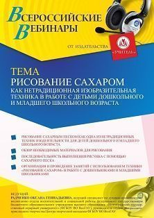 Вебинар Рисование сахаром как нетрадиционная изобразительная техника в работе с детьми дошкольного и младшего школьного возраста