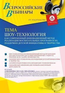 Вебинар Шоу-технология как современный инновационный метод реализации воспитательных программ в ОО, поддержки детской инициативы и творчества