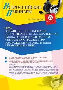 Вебинар Сохранение, использование, популяризация и государственная охрана объектов культурного и природного наследия РФ: законодательное обеспечение и правоприменение