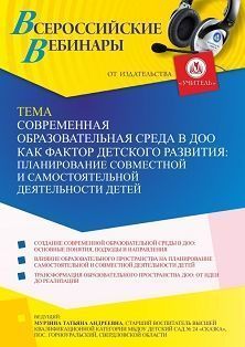 Вебинар Современная образовательная среда в ДОО как фактор детского развития: планирование совместной и самостоятельной деятельности детей
