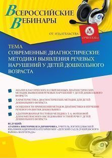Вебинар Современные диагностические методики выявления речевых нарушений у детей дошкольного возраста