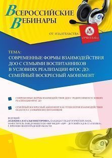 Вебинар "Современные формы взаимодействия ДОО с семьями воспитанников в условиях реализации ФГОС ДО: семейный воскресный абонемент"