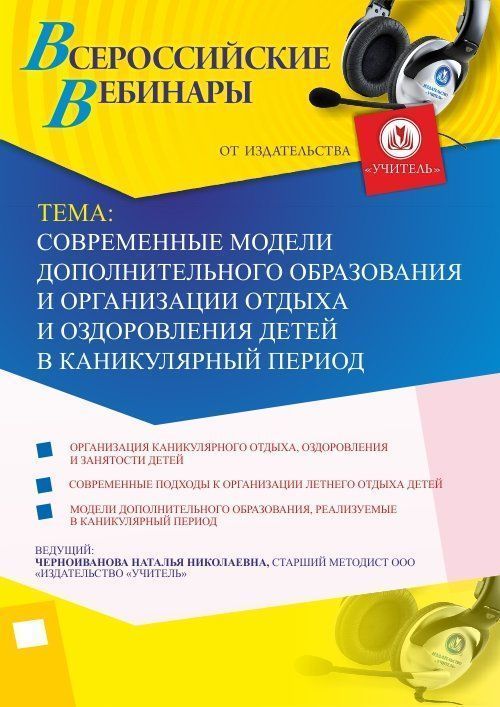 Вебинар "Современные модели дополнительного образования и организации отдыха и оздоровления детей в каникулярный период"