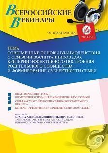 Вебинар Современные основы взаимодействия с семьями воспитанников ДОО. Критерии эффективного построения родительского сообщества и формирование субъектности семьи