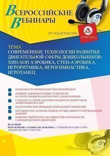 Вебинар Современные технологии развития двигательной сферы дошкольников: хип-хоп аэробика, степ-аэробика, игроритмика, игрогимнастика, игротанец