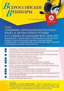 Вебинар Специфика преподавания русского языка и литературного чтения в условиях реализации ФГОС НОО-2021: обновление содержания и требований к результатам, новые технологии образования, формирующее оценивание, формирование функциональной грамотности
