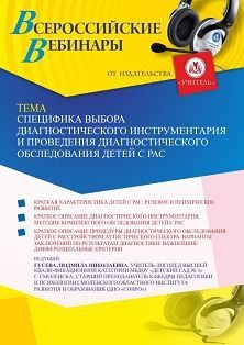 Вебинар Специфика выбора диагностического инструментария и проведения диагностического обследования детей с РАС