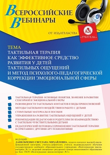 Вебинар Тактильная терапия как эффективное средство развития у детей тактильных ощущений и метод психолого-педагогической коррекции эмоциональной сферы
