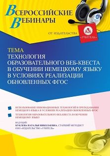 Вебинар Технология образовательного Веб-квеста в обучении немецкому языку в условиях реализации обновленных ФГОС
