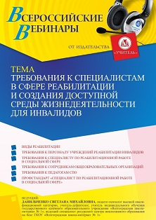 Вебинар Требования к специалистам в сфере реабилитации и создания доступной среды жизнедеятельности для инвалидов
