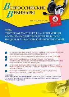 Вебинар Творческая мастерская как современная форма взаимодействия детей, педагогов и родителей: практический инструментарий