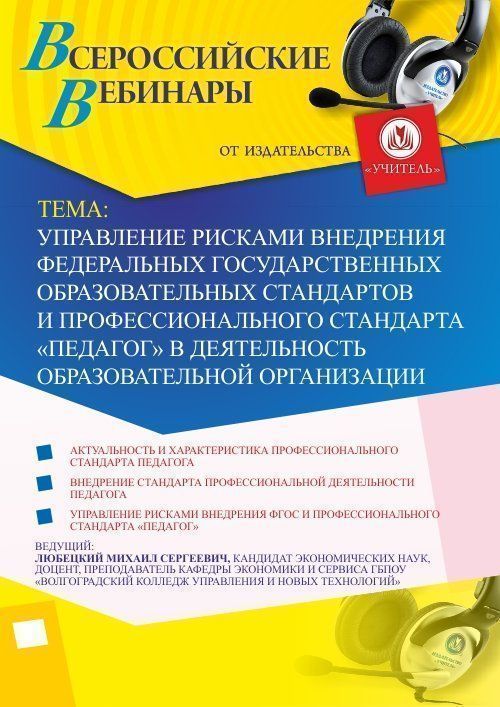 Вебинар Управление рисками внедрения федеральных государственных образовательных стандартов и профессионального стандарта "Педагог" в деятельность образовательной организации