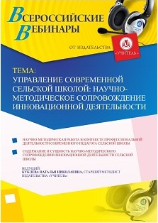 Вебинар "Управление современной сельской школой: научно-методическое сопровождение инновационной деятельности"