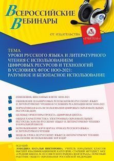 Вебинар Уроки русского языка и литературного чтения с использованием цифровых ресурсов и технологий в условиях ФГОС НОО-2021: разумное и безопасное использование