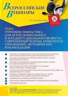 Вебинар Утренняя гимнастика для детей дошкольного и младшего школьного возраста: современный подход, комплексы упражнений, методические рекомендации
