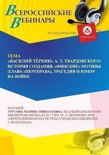 Вебинар “Василий Тёркин” А. Т. Твардовского: история создания, “финские” мотивы (глава “Переправа”), трагедия и юмор на войне