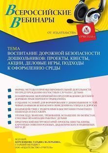 Вебинар Воспитание дорожной безопасности дошкольников: проекты, квесты, акции, деловые игры, подходы к оформлению среды