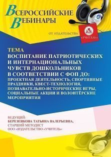 Вебинар Воспитание патриотических и интернациональных чувств дошкольников в соответствии с ФОП ДО: проектная деятельность, квест-технология, спортивные праздники, познавательно-исторические игры, социальные акции и волонтёрские мероприятия
